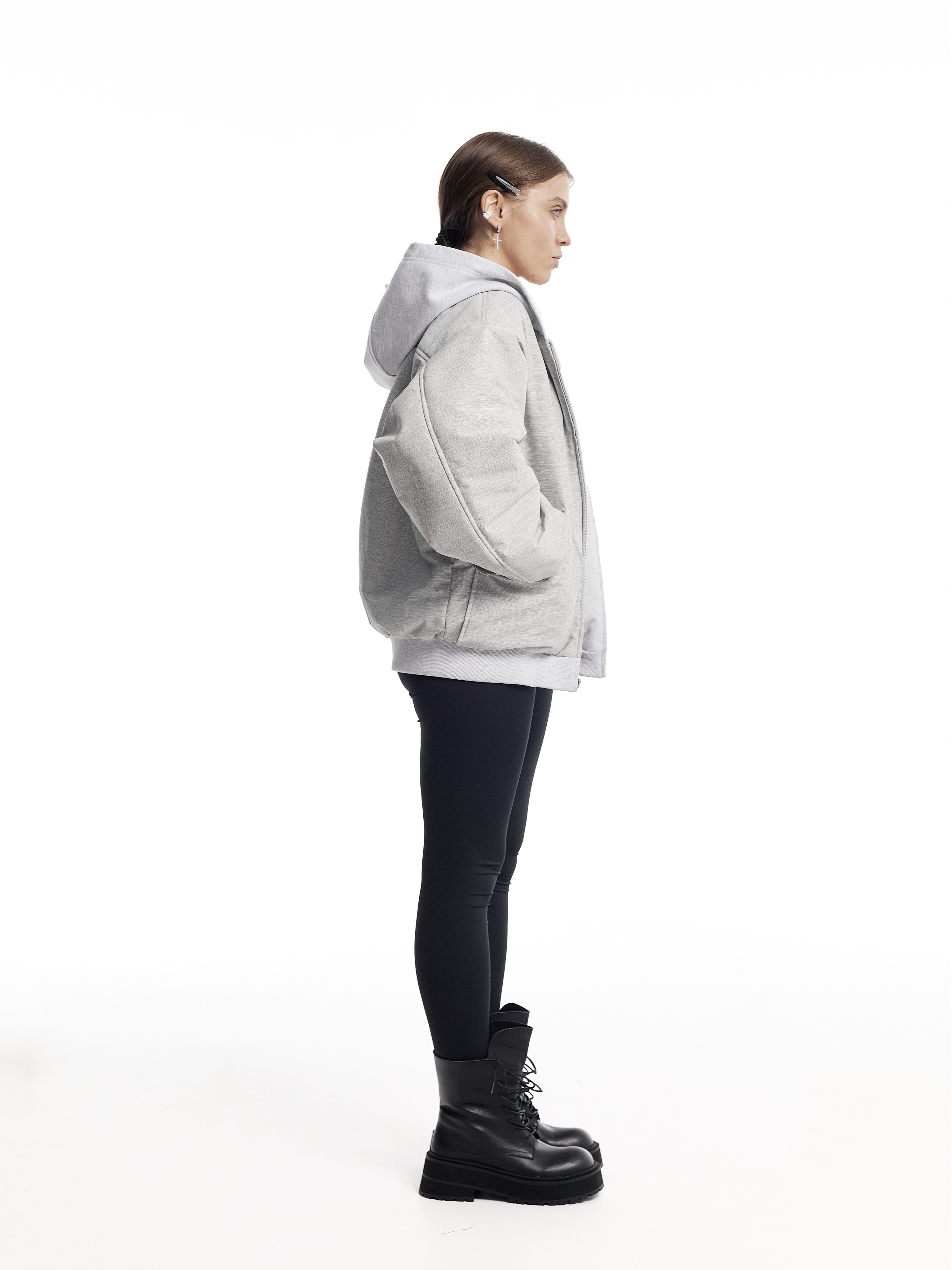 Вторая сторона : мембранный материал с ветро-влагозащитой ( абсолютно тактильно приятный к телу )